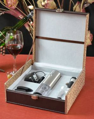 產品配置:不銹鋼電動開瓶器、割紙器、真空酒塞、倒酒器、電源線
