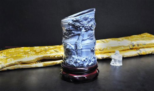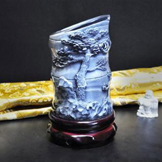 本竹節(jié)筆筒采用竹子造型,節(jié)節(jié)增高,象征生活美好。筒身刻歲寒三友,象征堅強(qiáng)如意。