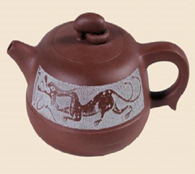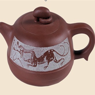 2、由宜興資深制壺老藝人傾心手制、圖案取自中國漢拓博物館,刀筆臨摹刻繪。