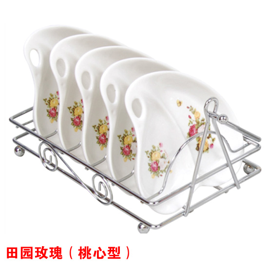 田園玫瑰(桃心型) 貨號:TJ-648 產(chǎn)品名稱:糖醋碟及架子6P 規(guī)格:205x127x125mm