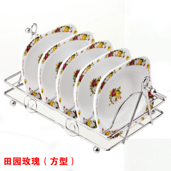 田園玫瑰(方型) 貨號:TJ-646 產(chǎn)品名稱:糖醋碟及架子6P 規(guī)格:205x127x125mm