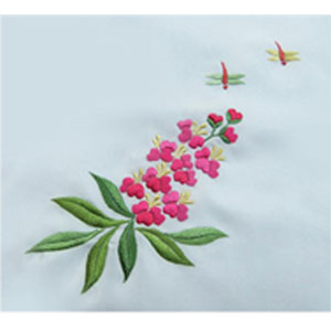 廣繡是珠江三角洲民間刺繡工藝的統(tǒng)稱,廣繡與蜀繡、湘繡、蘇繡并稱中國四大名繡。于2006年列入第一批國家非物質(zhì)文化遺產(chǎn)名錄,具有極高的收藏價值。廣繡所使用的基本材料有絲絨、真絲、金線、銀線、金絨混合等幾大類。其中金銀繡獨(dú)具裝飾性,構(gòu)圖飽滿勻稱,色彩輝煌,顯得富麗華貴。以其構(gòu)圖飽滿,形象傳神,紋理清晰,色澤富麗,針法多樣,善于變化的藝術(shù)特色而聞名于世。廣繡多以龍鳳、花卉、禽鳥、水族、人物為主要題材,花紋繁密、瑣細(xì),雖色彩十分強(qiáng)烈,但因花朵細(xì)碎,彼此相互吸收,形成和諧統(tǒng)一,獨(dú)具風(fēng)格的藝術(shù)效果。色彩斑斕的廣繡以其極富裝飾性為藝術(shù)特色,是嶺南地方特色的傳統(tǒng)工藝美術(shù)品。廣繡包括有真絲繡、線繡、珠繡和釘金繡四大類。