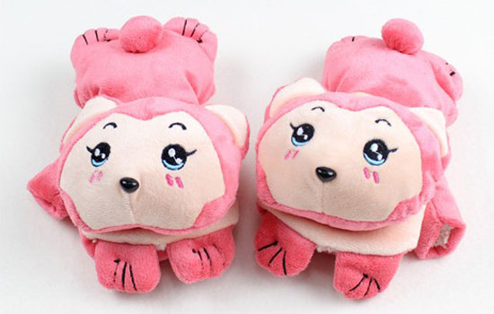腈綸紗+手指觸摸的導電紗觸屏手套(粉色,黑色)