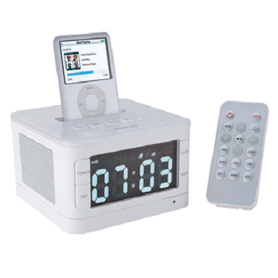 內置高級功放,低音效果卓越,可控制IPOD菜單,便攜式設計 LCD背光的時鐘顯示和菜單功能;可外接其它音源;MP3.MP4.DVD.PC.CD等 帶FM ,時間顯示,邊播放邊充電,雙鬧鐘功能; --CE認證和FCC認證;