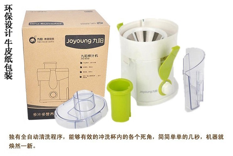 產品名稱:Joyoung/九陽 JYL-B550 品牌:Joyoung/九陽 型號:JYZ-B550 榨汁攪拌料理機功率:200W及以下 一次性最大出汁量:601-800ml 果肉渣滓盒容量:500ml以下(含500ml) 加料口形狀:圓形 榨汁機最高轉速:15001-18000轉/分 榨汁機附加功能:碎冰 干磨 制奶昔 機身材質:塑料